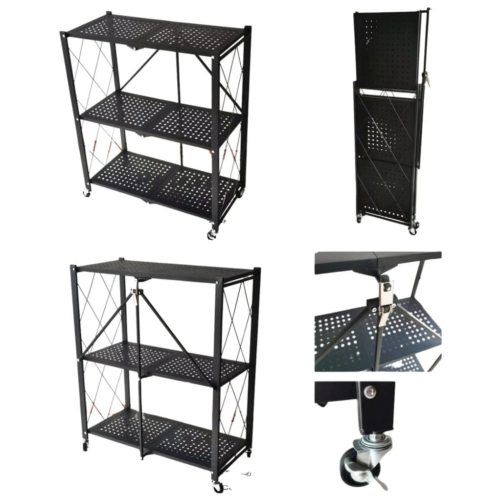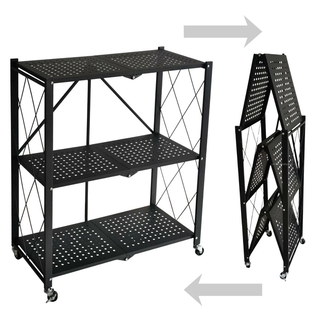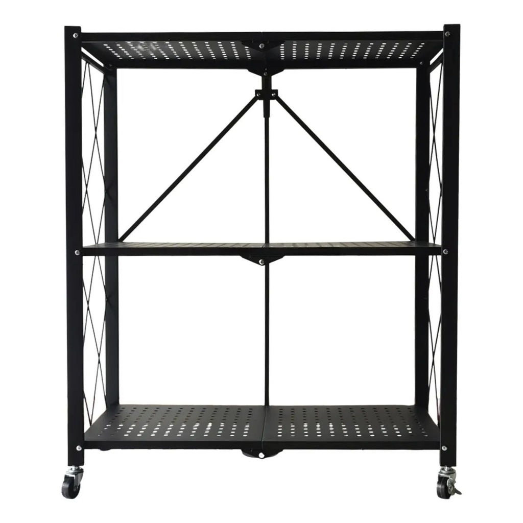 Estante Dobrável 3 Andares Prateleiras Com Rodinha