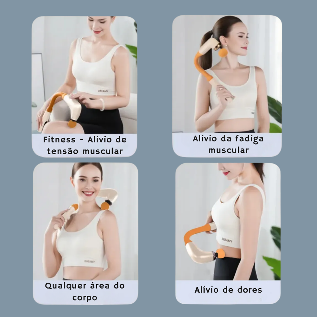 Sua bateria de longa duração garante sessões prolongadas, enquanto o design silencioso permite desfrutar de uma massagem relaxante sem perturbações.
