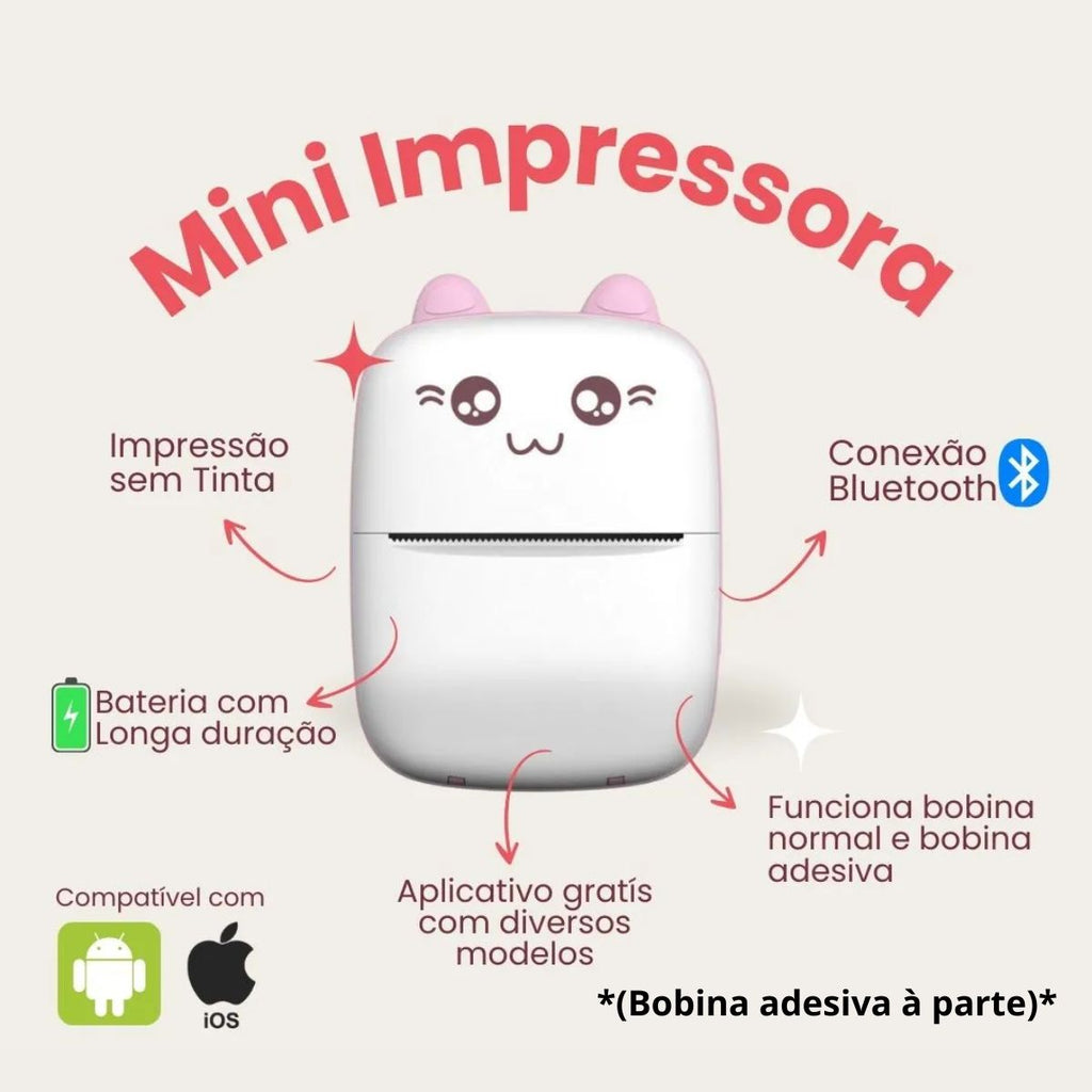 Mini Impressora Térmica Sem Tinta Bluetooth