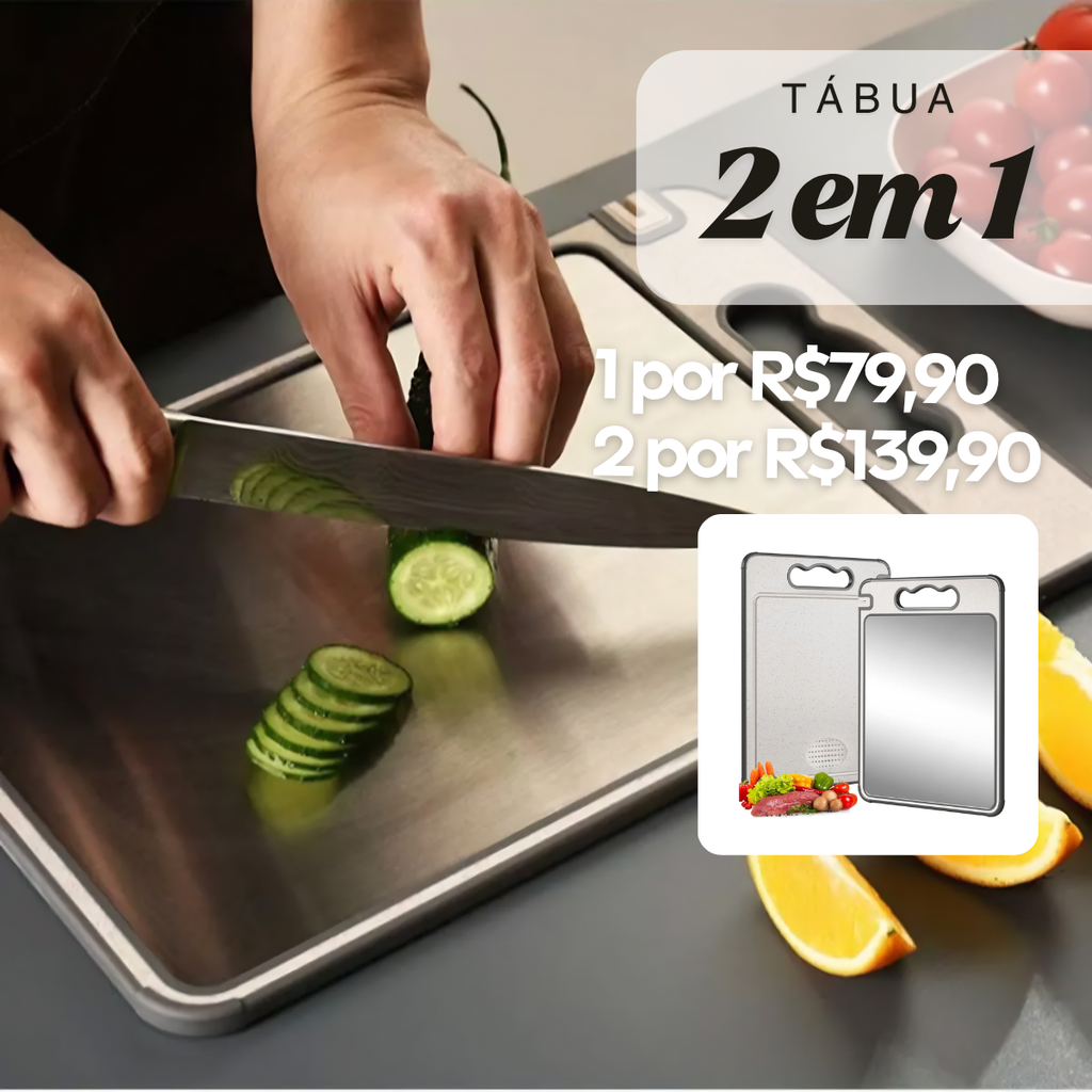 Placa de corte dupla face em aço inoxidável | Antimofo e Antibacteriano